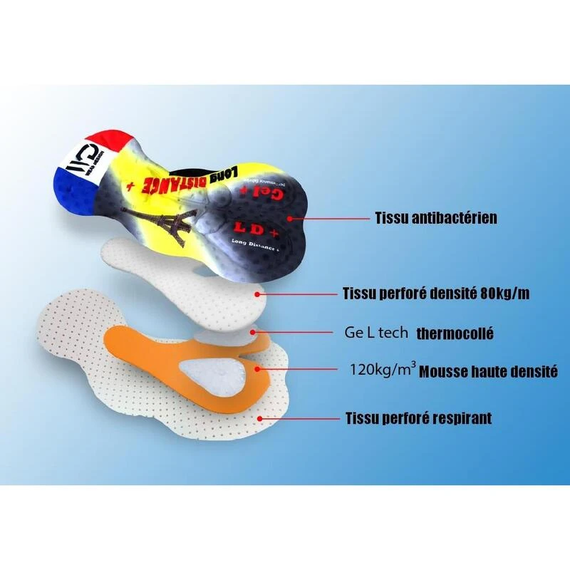 Collant à bretelle avec peau GEL LONGUE DISTANCE fabriquée en Italie, coupe vent et dépérlant sur les cuisses. Doublé polaire à l’intérieur, idéal pour vos sorties froides hivernales.